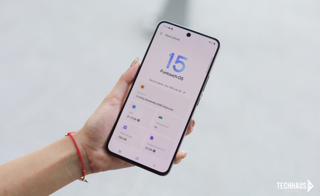 vivo V50 Lite ขับเคลื่อนด้วยชิปเซ็ต MediaTek Dimensity 6300 และทำงานบนระบบปฏิบัติการ Funtouch OS 15 บนพื้นฐาน Android 15 ให้ประสิทธิภาพการประมวลผลที่รวดเร็ว และรองรับเครือข่าย 5G ช่วยให้การแชร์ภาพและวิดีโอเป็นไปอย่างไม่สะดุด พร้อมมอบประสบการณ์การเล่นเกมและรับชมวิดีโอที่ความคมชัด ไม่มีกระตุก