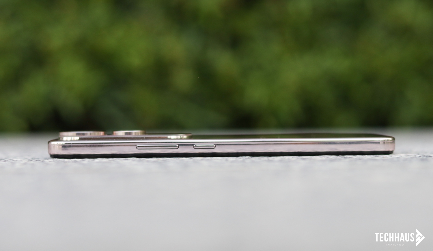 ส่วนทางด้านขวามีปุ่มใช้งานพื้นฐานที่ออกแบบมาอย่างลงตัว ปุ่มยาวสำหรับปรับระดับเสียงให้สัมผัสที่แม่นยำ และปุ่มเพาเวอร์ขนาดเล็กแต่กดง่าย มีผิวสัมผัสที่แตกต่างทำให้แยกแยะได้ง่ายแม้ในที่มืด