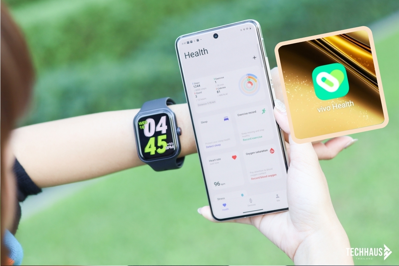 การตั้งค่าเริ่มต้นทำได้ง่ายมาก เพียงดาวน์โหลดแอป vivo Health แล้วเชื่อมต่อผ่านบลูทูธ ใช้เวลาเพียงไม่กี่นาที