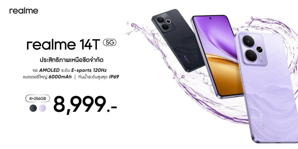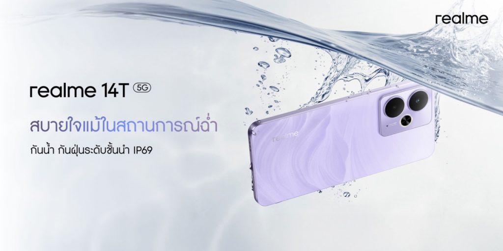realme เปิดตัว realme 14T 5G สมาร์ตโฟนรุ่นใหม่ สเปกแบต 6000mAh พร้อมมาตรฐานกันน้ำ IP69 สูงสุดในราคาเพียง 8,999 บาท