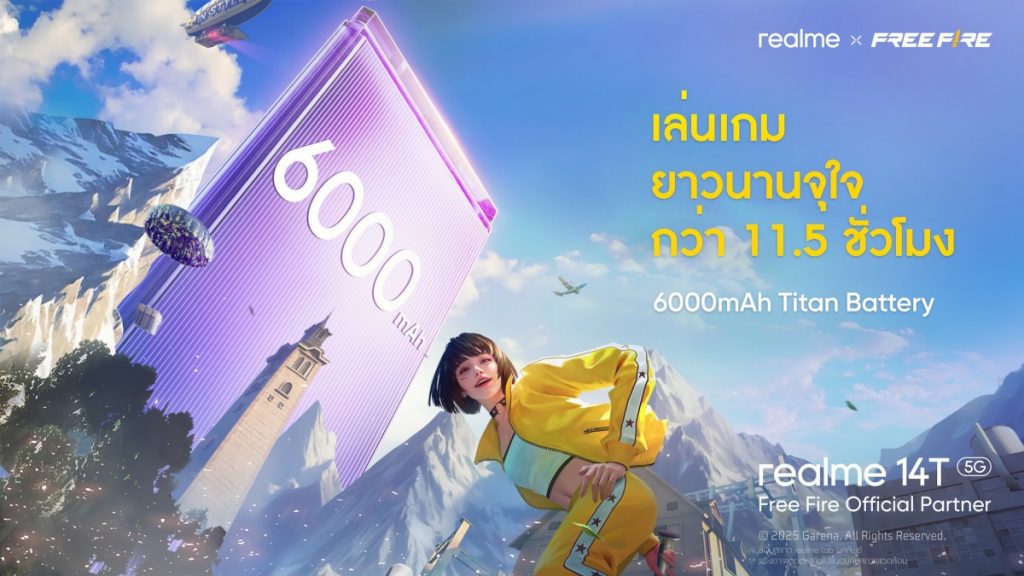 realme แบรนด์สมาร์ตโฟนเพื่อคนรุ่นใหม่ เปิดตัว realme 14T 5G สมาร์ตโฟนใหม่ล่าสุดในตระกูล Number Series อย่างเป็นทางการเมื่อวันที่ 15 พฤษภาคม ที่กรุงเทพฯ โดยเน้นจุดเด่นด้านแบตเตอรี่ความจุมหาศาล 6000mAh และมาตรฐานกันน้ำกันฝุ่นระดับสูงสุด IP69/IP68/IP66 ที่รองรับการใช้งานในทุกสภาวะ