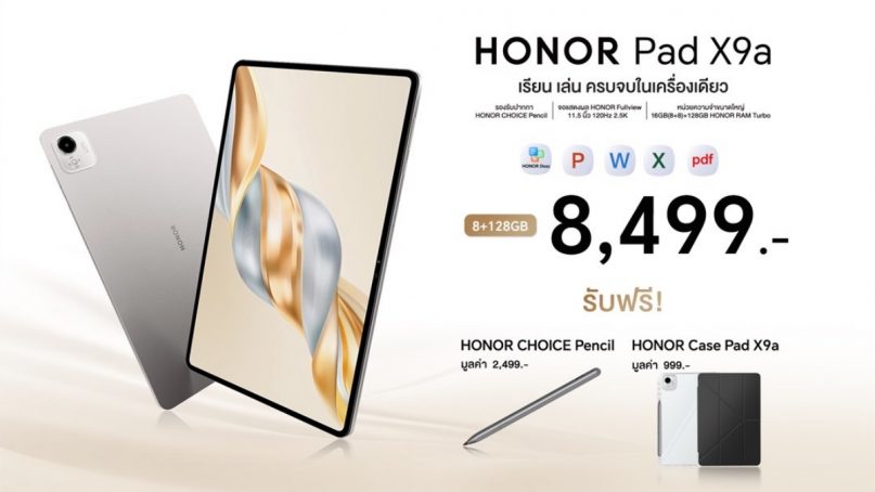 ออเนอร์ เปิดตัวแท็บเล็ตใหม่ล่าสุด HONOR Pad X9a จอ 11.5 นิ้ว รองรับ Stylus ราคาเริ่มต้น 8,499 บาท พร้อมโปรฯ