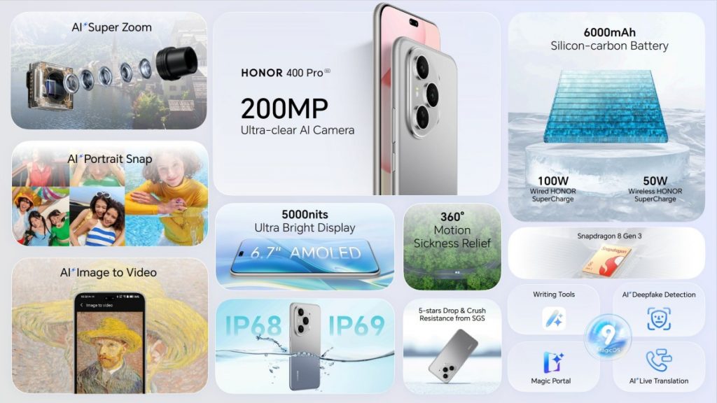 บริษัท Honor ได้ประกาศเปิดตัวสมาร์ทโฟนซีรีส์ใหม่ล่าสุด Honor 400 และ Honor 400 Pro ซึ่งนำกล้องหลักความละเอียดสูง 200 เมกะพิกเซลกลับมาให้ผู้ใช้งานได้สัมผัสอีกครั้ง หลังจากที่บริษัทหันไปใช้เซนเซอร์ความละเอียดต่ำกว่าในรุ่นก่อนหน้าหลายเจนเนอเรชั่น