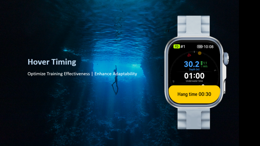 โหมดฝึกกลั้นหายใจ (Apnea Training) ช่วยพัฒนาเทคนิคการควบคุมลมหายใจโดยวัดค่าระดับออกซิเจนในเลือดและเพิ่มความทนทานของร่างกาย