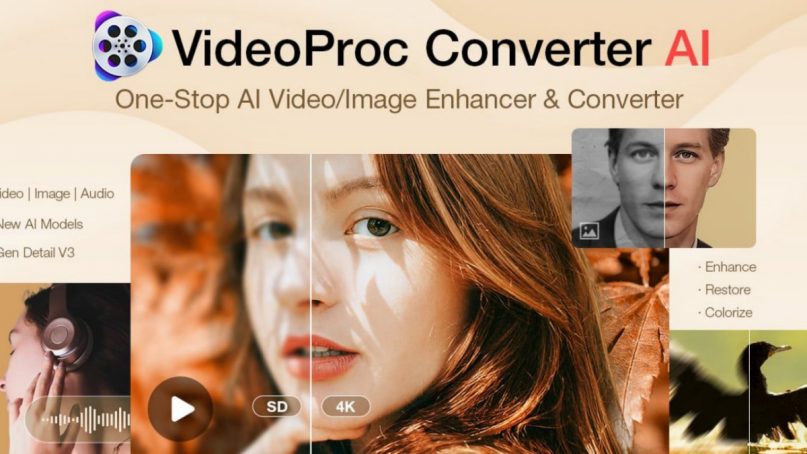 VideoProc Converter AI เป็นซอฟต์แวร์ที่ใช้เทคโนโลยี AI ในการปรับปรุงคุณภาพวิดีโอ รูปภาพ เสียง และ DVD ด้วยเครื่องมือที่หลากหลาย ทั้งการแปลงไฟล์ การซ่อมแซม การบีบอัด การตัดต่อ และการสร้าง GIF