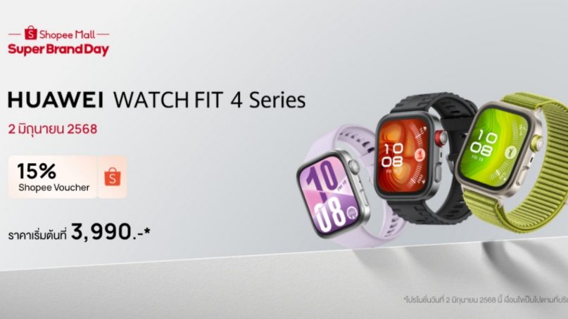 หัวเว่ย เปิดตัวสมาร์ทวอทช์รุ่นใหม่ HUAWEI WATCH FIT 4 Series พร้อมโปรโมชันพิเศษในแคมเปญ Shopee Super Brand Day วันที่ 2 มิถุนายน 2568 ด้วยส่วนลดสูงสุด 15% และของแถมมูลค่ารวมกว่า 2,800 บาท