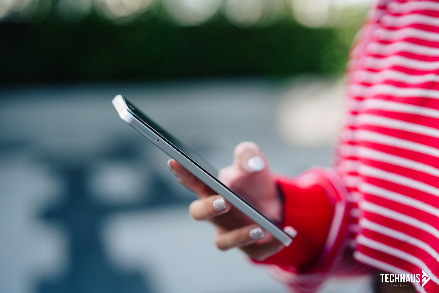 ยกตัวเครื่องขึ้นมา… โอ้โห! สัมผัสแรกต้องบอกว่าตัวเครื่องบางเฉียบ ตัวเครื่องมีขนาดกะทัดรัดที่ 165.8 x 75.9 x 7.79 มิลลิเมตร แม้จะมีแบตเตอรี่ขนาดใหญ่แต่ก็ยังคงความบางเพียง 7.79 มิลลิเมตร น้ำหนักเพียง 196 กรัม ทำให้จับถือสะดวกและไม่หนักมือ นับเป็นสมาร์ทโฟนที่จับถือสบายมือที่สุดในระดับราคาเดียวกัน ทำให้พกพาและใช้งานได้อย่างสะดวกสบาย