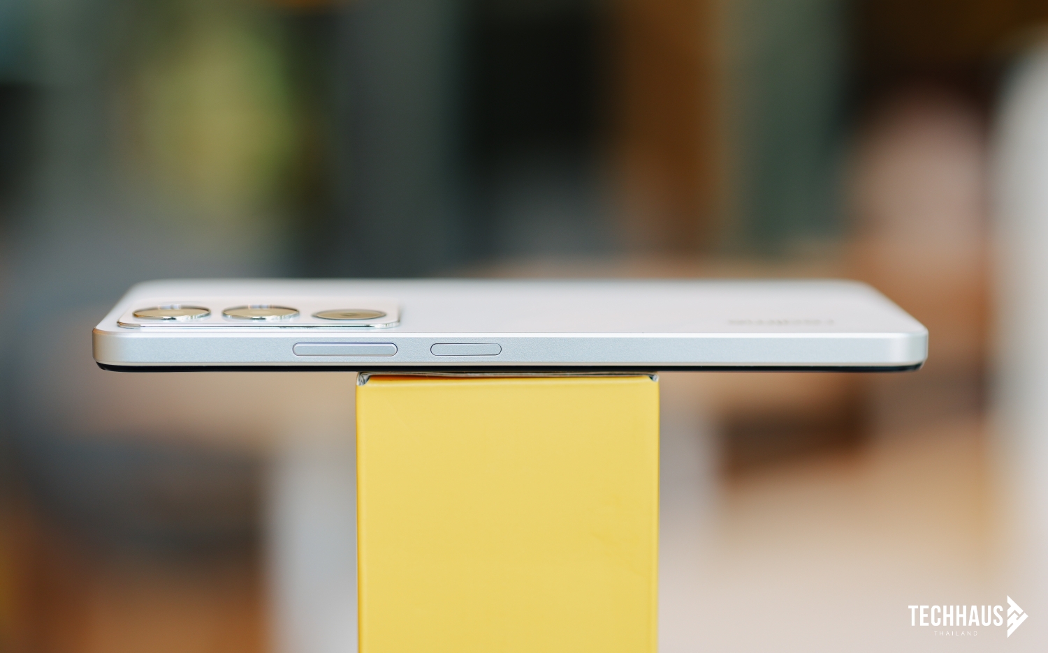 เริ่มจากกล่องสีเหลืองดีไซน์เรียบหรูที่มีโลโก้ realme C71 โดดเด่น พอเปิดฝากล่องออกมา สิ่งแรกที่เจอคือตัวเครื่องที่มีให้เลือก 2 สีสุดพรีเมียม White Swan ขาวหงส์ และ Forest Owl เขียวนกฮูก สำหรับวันนี้เราได้สีขาวมารีวิวครับ