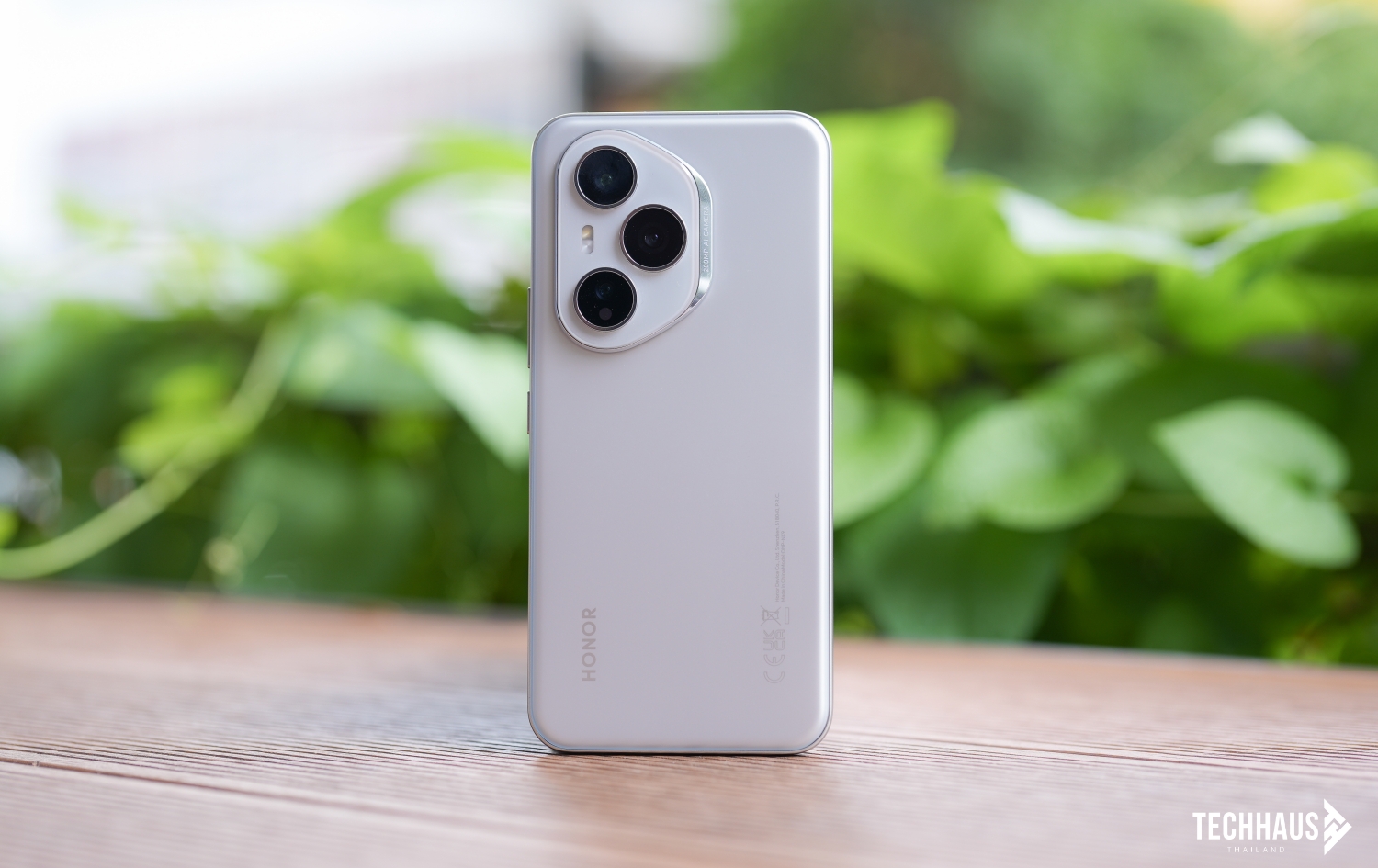 กล้องหลักความละเอียด 200MP พร้อมรูรับแสง f/1.8 เซนเซอร์ขนาดใหญ่ 1/1.4 นิ้ว รองรับ OIS+EIS ให้ภาพคมชัดแม้ในสภาพแสงน้อย กล้อง Telephoto ความละเอียด 50MP ใช้เซนเซอร์ Sony IMX856 รองรับซูมออปติคัล 3x พร้อม OIS และกล้อง Ultra-Wide ความละเอียด 12MP มุมกว้างถึง 112° พร้อมไฟแฟลช LED และมุมซ้ายล่างมีสัญลักษณ์ HONOR ที่ดูลงตัว