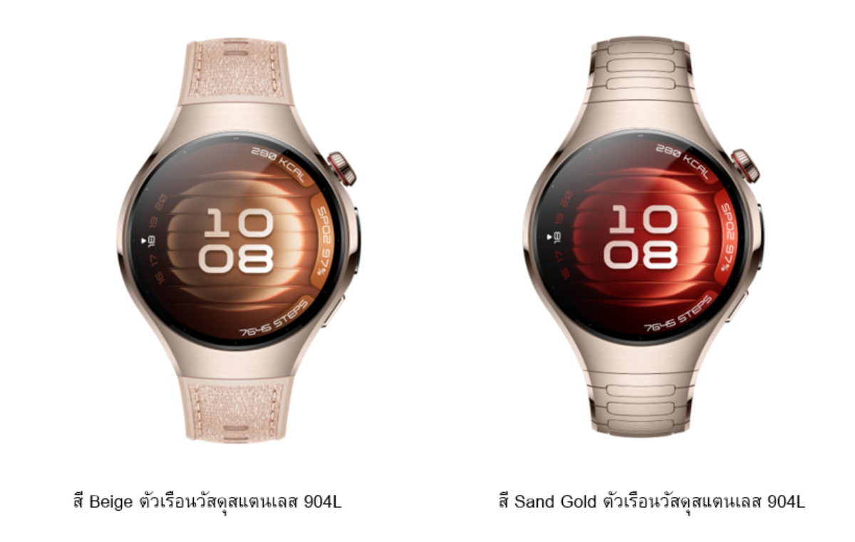HUAWEI WATCH 5 รุ่น 42mm มี 2 สีให้เลือก คือสี Sand Gold จากสแตนเลส 904L ราคา 18,990 บาท และสี Beige จากสแตนเลส 904L ราคา 15,990 บาท