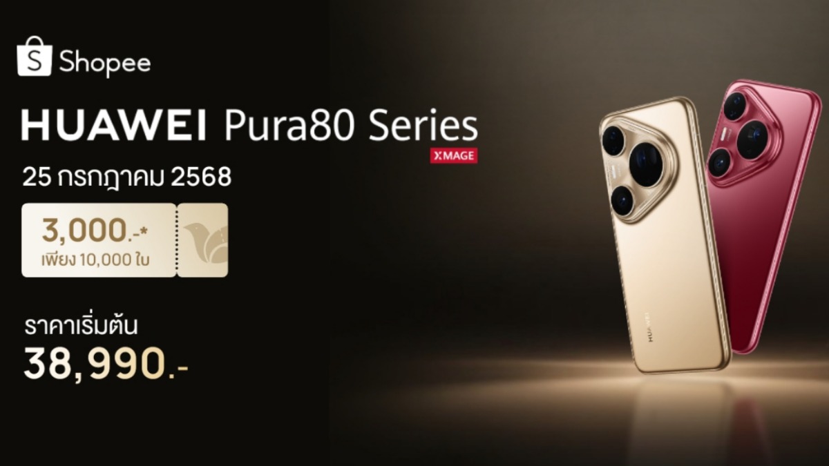 หัวเว่ย เปิดตัวแคมเปญ Payday สุดพิเศษบน Shopee วันที่ 25 กรกฎาคมนี้ มอบส่วนลดสูงสุด 3,000 บาทสำหรับ HUAWEI Pura 80 Series พร้อมของสมนาคุณมูลค่ากว่า 19,000 บาท