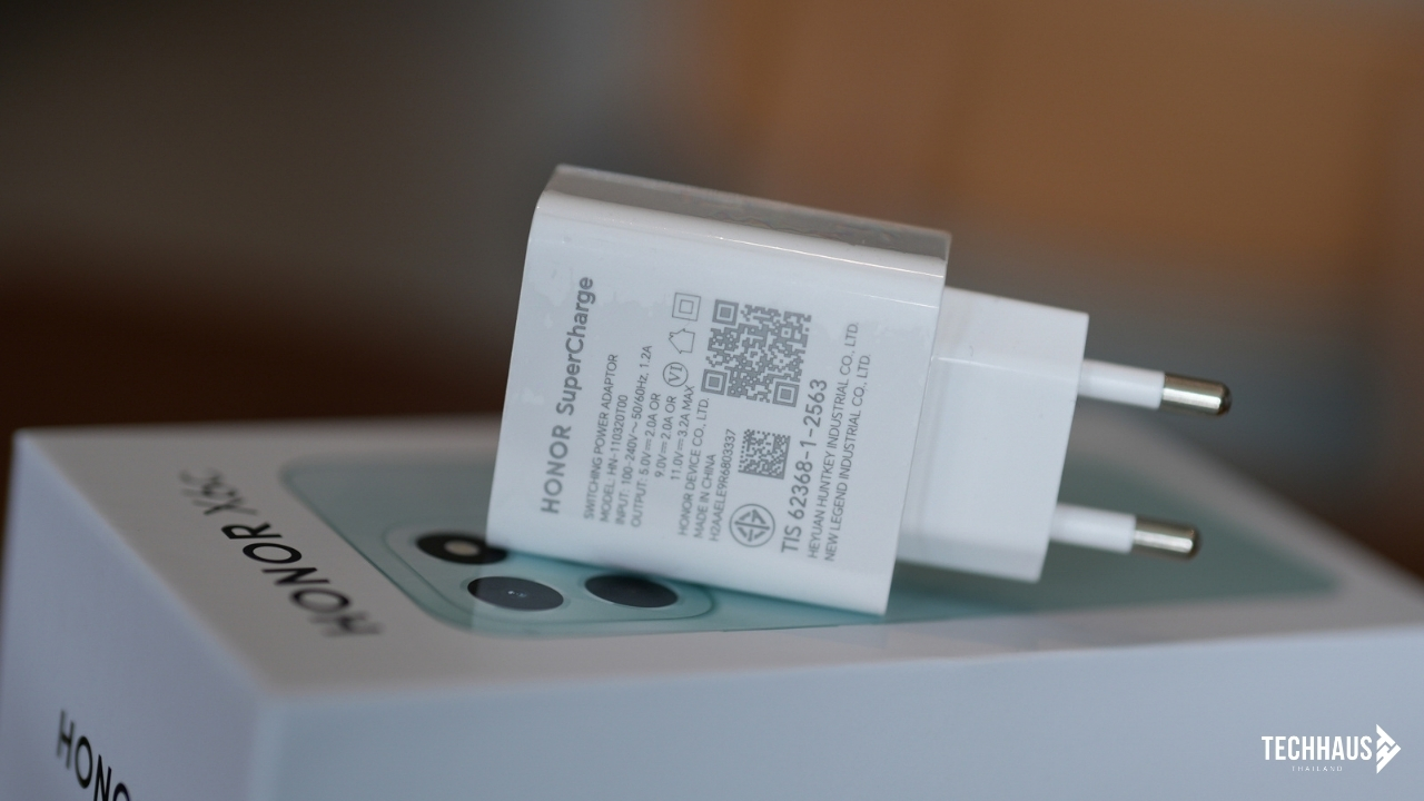 สำหรับข้างในกล่องนั้นทาง HONOR เขายังให้ของแถมมาครบเซ็ตไม่ว่าจะเป็นหัวชาร์จ 35W ที่มีขนาดกะทัดรัด, สายชาร์จ USB Type-C ที่มีคุณภาพดี, คู่มือการใช้งานที่เขียนเป็นภาษาไทยชัดเจน, เข็มจิ้มซิมการ์ดโทรศัพท์ที่ทำจากโลหะคุณภาพสูงและเคสใสคุณภาพดี