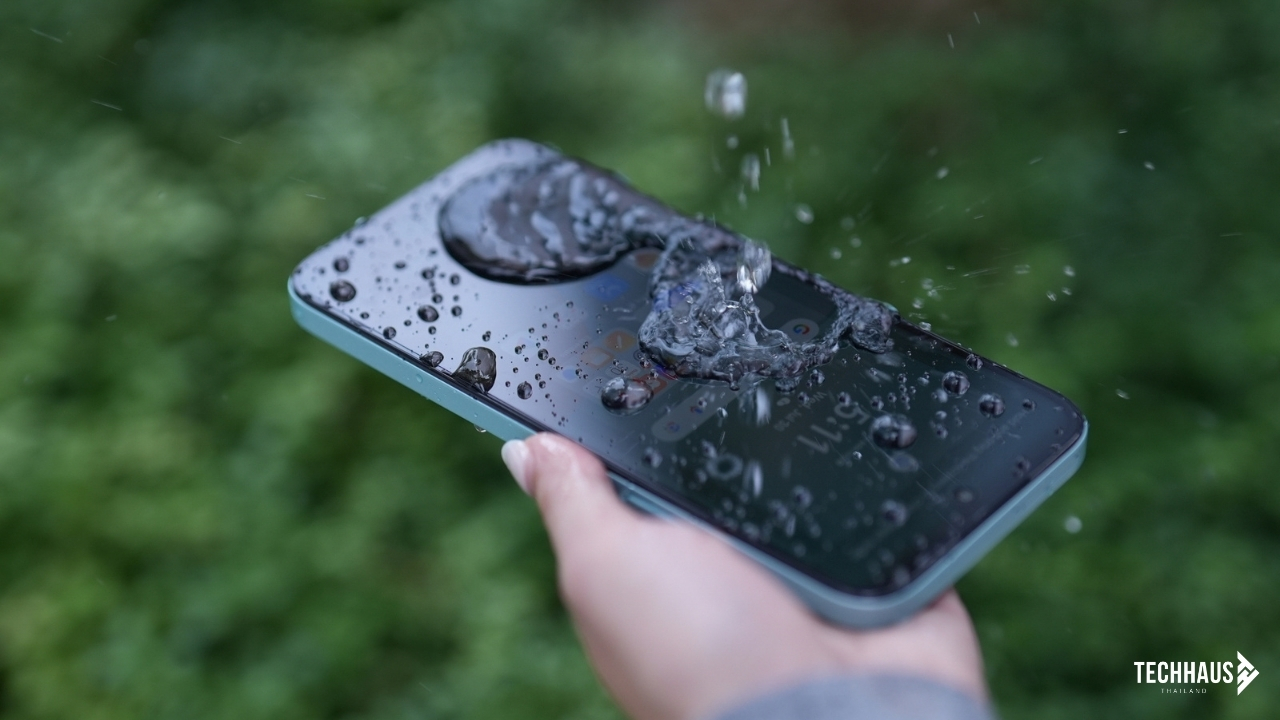 ทดสอบกันน้ำในสถานการณ์จริง นำไปใช้ขณะฝนตก สาดน้ำใส่ หรือแม้กระทั่งล้างมือแล้วจับสมาร์ทโฟนทันทีก็ไม่มีปัญหา ระบบป้องกันน้ำระดับ IP64 ทำงานได้จริงตามที่โฆษณา ไม่ใช่แค่การทดสอบในห้องแล็บเท่านั้น ใช้งานในสภาพแวดล้อมที่มีฝุ่นมาก เช่น บริเวณก่อสร้าง หรือนำไปเที่ยวทะเล ก็ไม่เกิดปัญหาฝุ่นเข้าไปในเครื่อง