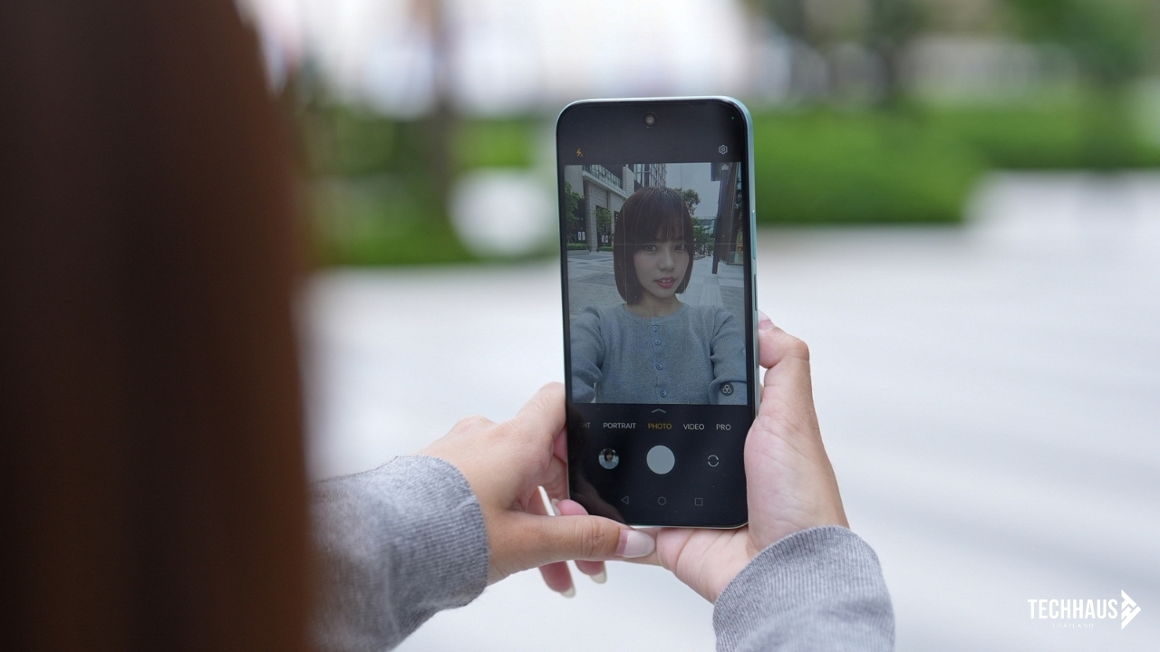 กล้องหน้าความละเอียด 5MP พร้อมให้คุณถ่ายเซลฟี่ได้อย่างสดใสและชัดเจน โดยมี AI ช่วยปรับแต่งภาพให้ออกมาดูเป็นมืออาชีพได้ง่ายๆ ไม่ต้องเปิดแอปแต่งรูปภายนอก