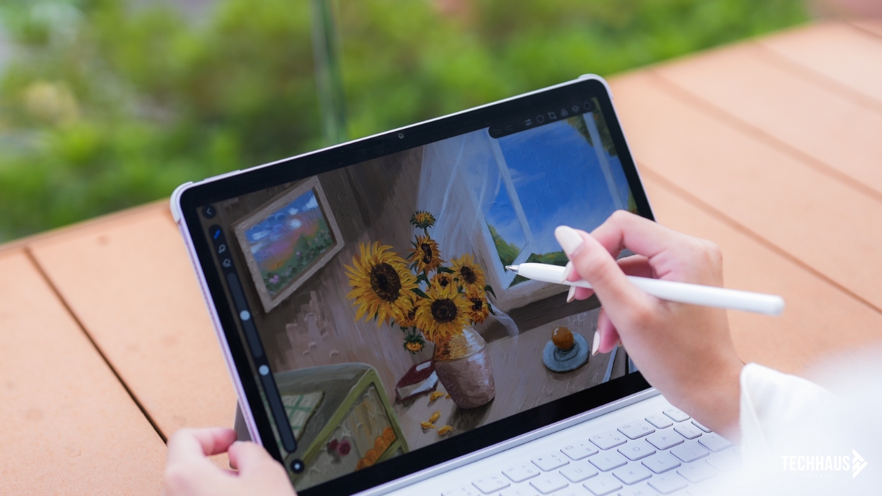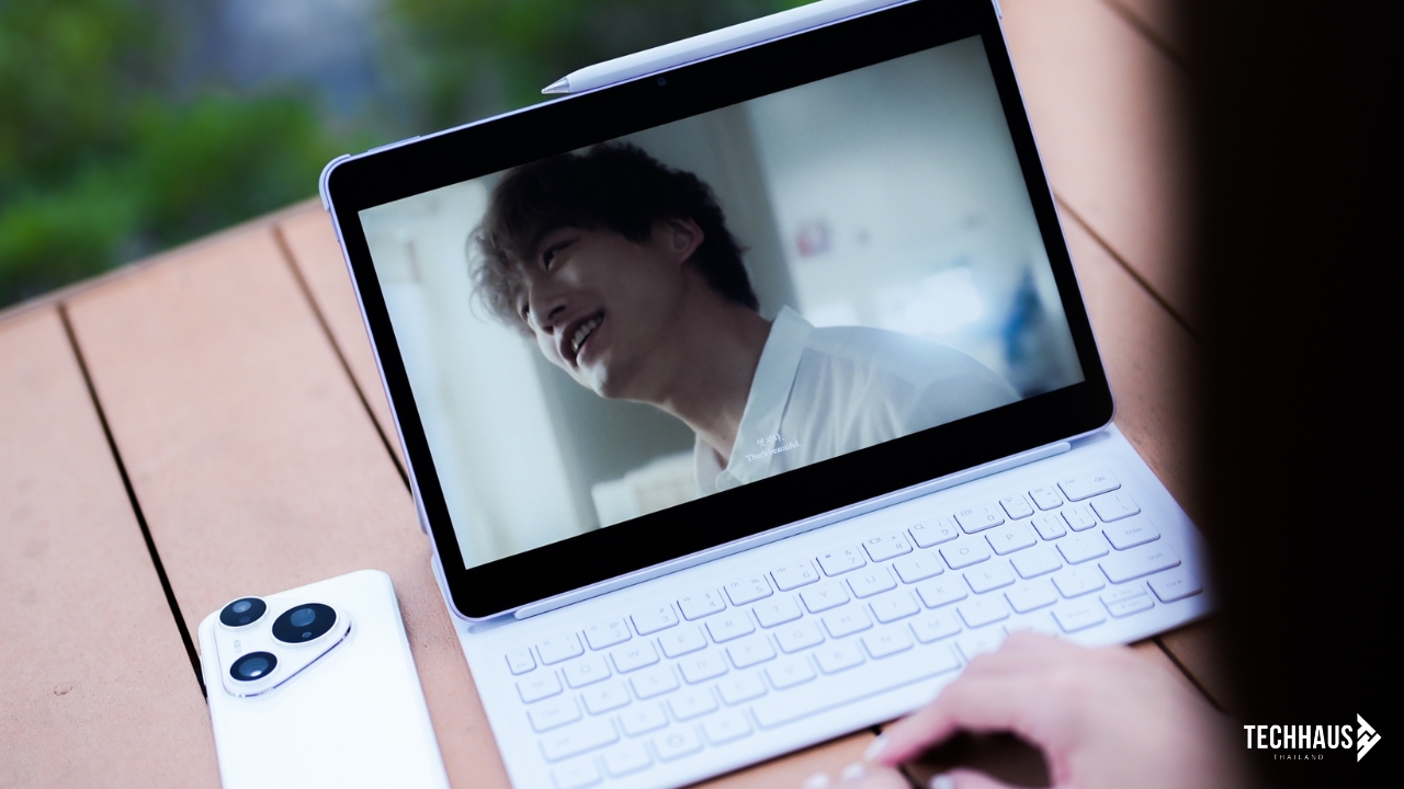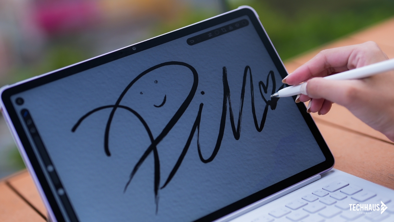 นอกจากนี้ การนำเสนอผ่านหน้าจอใหญ่ 11.5 นิ้ว ทำให้สามารถดูรายละเอียดได้อย่างชัดเจน และความสามารถในการใช้ M-Pencil เขียนบันทึกบนสไลด์ระหว่างการนำเสนอ เป็นฟีเจอร์ที่สมาร์ทโฟนไม่สามารถทำได้