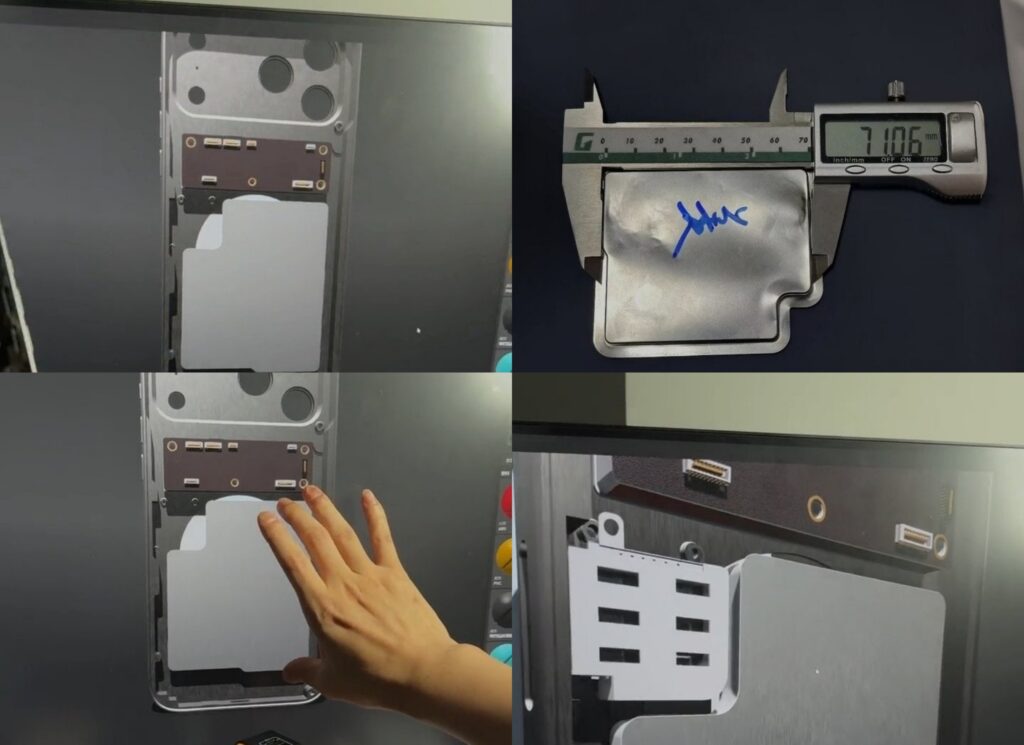 แม้ว่าภาพเหล่านี้จะไม่น่าจะเป็นไฟล์ CAD (Computer-Aided Design) อย่างเป็นทางการจาก Apple แต่ก็อาจให้ภาพที่แม่นยำของสิ่งที่มีข่าวลือมา ภาพดังกล่าวแสดงให้เห็นว่า iPhone 17 Pro Max จะมาพร้อมกับแบตเตอรี่ที่เคลือบด้วยโลหะ ตามที่เคยมีข่าวลือมาก่อนหน้านี้