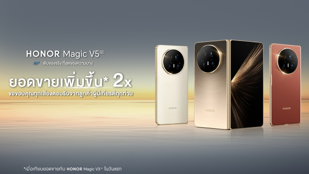 ผลสำเร็จดังกล่าวทำให้ HONOR Magic V5 กลายเป็นสมาร์ตโฟนจอพับที่ถูกจับตามากที่สุดแห่งปี และเป็นที่ต้องการของตลาดอย่างแท้จริง