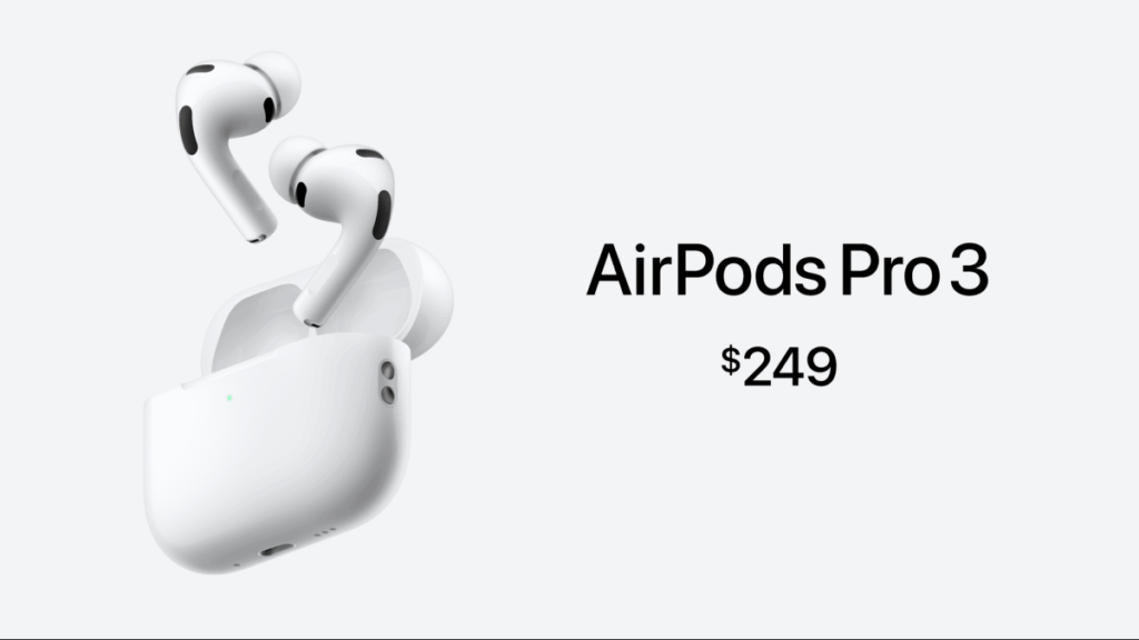 บริษัท Apple ได้เปิดตัว AirPods Pro 3 ในงานเปิดตัวผลิตภัณฑ์ใหม่ที่มีชื่อว่า “Awe Dropping” ณ สำนักงานใหญ่ Apple Park เมื่อวันอังคารที่ 9 กันยายน 2025 โดยหูฟังไร้สายรุ่นใหม่นี้มาพร้อมกับการปรับปรุงที่สำคัญหลายประการ