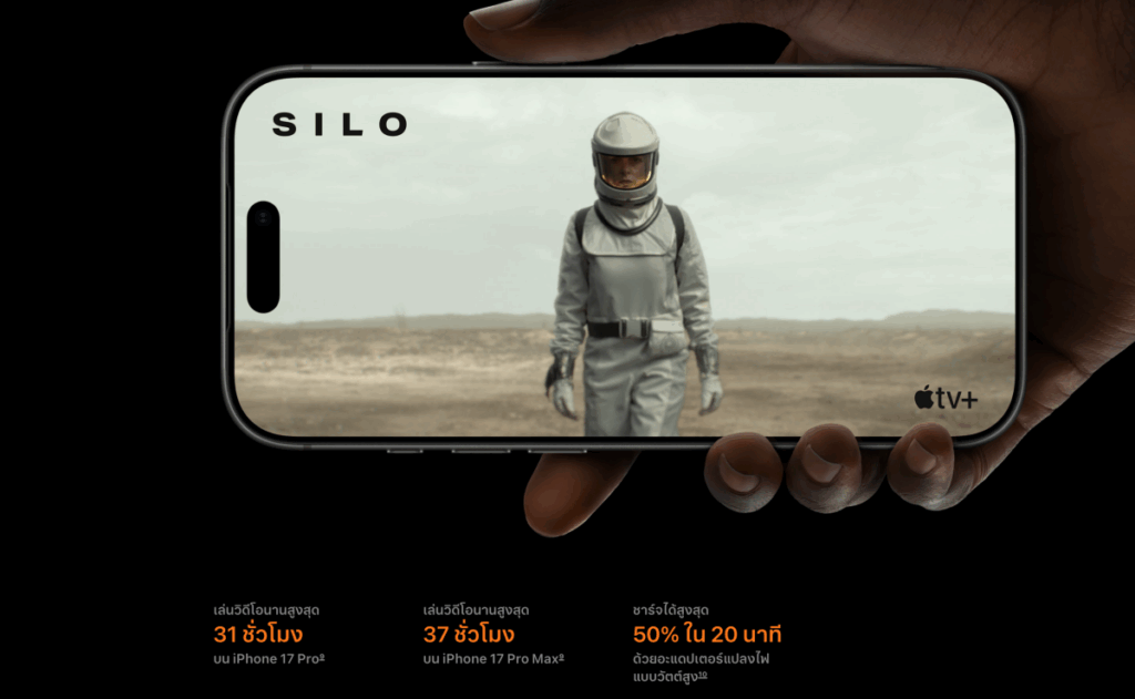 อย่างไรก็ตาม ต้องทันสมัย อุปกรณ์ Pro Max ปกติใส่เซลล์ใหญ่ iPhone 16 Pro Max มีเกือบ 4,700 mAh ข่าวลือว่า iPhone 17 Pro Max ดันไปที่ 5,000 mAh ด้วย iOS หมายถึงอายุแบตเตอรี่ 2 วันอย่างง่ายดาย แต่เสียดายที่ Apple ไม่พูดความจุแบตเตอรี่ พูดแค่ “อายุแบตเตอรี่ทั้งวัน” และ “เล่นวิดีโอ 39 ชั่วโมง” ตัวเลขที่สองเพิ่มขึ้น 6 ชั่วโมงจากที่ iPhone 16 Pro Max อ้าง รอการ teardown และเบนช์มาร์ก