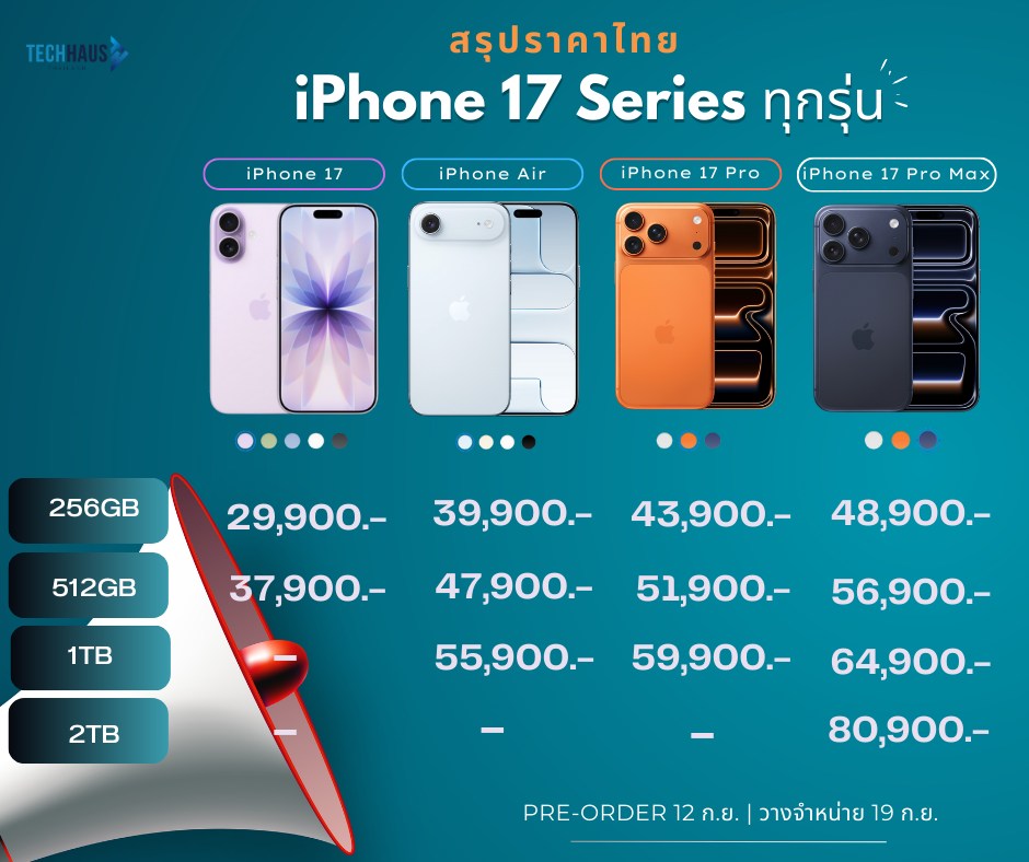 คู่มือเลือกซื้อ iPhone 17, Air, Pro หรือ Pro Max? เปรียบเทียบความแตกต่าง 40 จุด