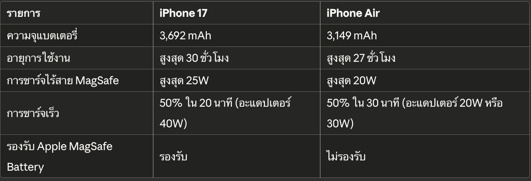 แม้ iPhone Air จะบางกว่า แต่ต้องแลกมาด้วยความจุแบตเตอรี่และความเร็วในการชาร์จ