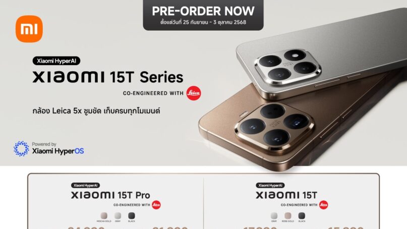 เสียวหมี่ ประเทศไทย ประกาศเปิดตัว Xiaomi 15T Series สมาร์ทโฟนรุ่นใหม่ล่าสุดอย่างเป็นทางการ ประกอบด้วย Xiaomi 15T และ Xiaomi 15T Pro ที่มาพร้อมระบบกล้องสามตัวขั้นสูงร่วมพัฒนากับ Leica และเทคโนโลยีสื่อสารที่ล้ำสมัย