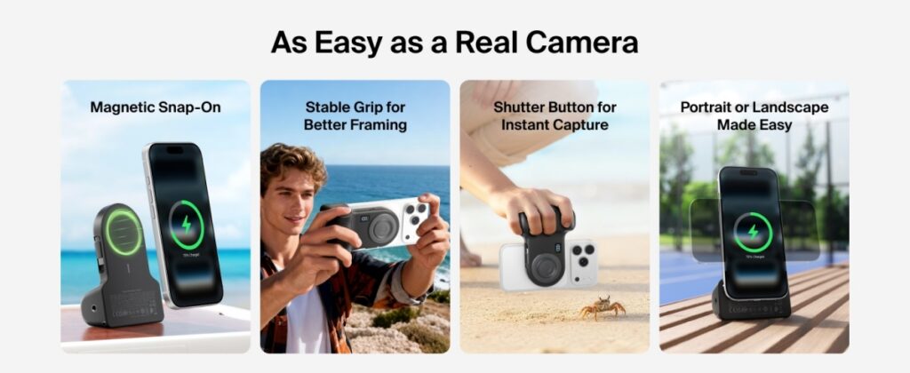 PowerGrip เป็นอุปกรณ์เสริมที่ออกแบบมาเพื่อตอบสนองความต้องการของนักสร้างคอนเทนต์ นักเขียนบล็อก และทิกทอกเกอร์ที่ต้องการถ่ายภาพและวิดีโอที่มีความคงที่และลื่นไหล โดยสามารถติดตั้งกับไอโฟนได้อย่างง่ายดายผ่านแม่เหล็ก และเชื่อมต่อผ่านบลูทูธเพื่อใช้ปุ่มควบคุมชัตเตอร์ได้โดยตรง
