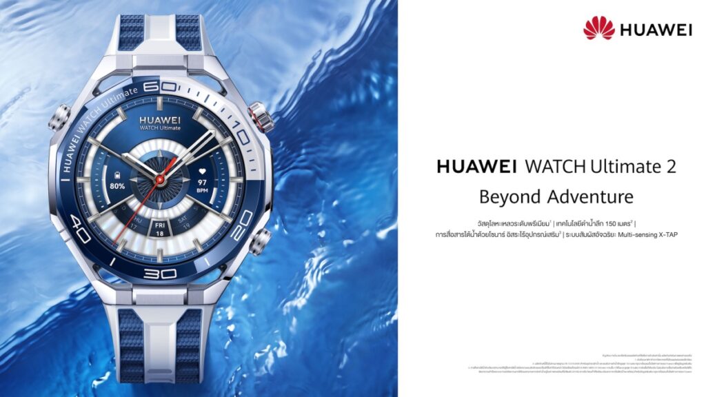 หัวเว่ย เปิดตัว HUAWEI WATCH Ultimate 2 สมาร์ทวอทช์ระดับพรีเมียมที่ผสานความหรูหราและฟังก์ชันสำหรับนักผจญภัย ครั้งแรกของโลกกับความสามารถในการดำน้ำลึกถึง 150 เมตร พร้อมนวัตกรรมระบบสื่อสารใต้น้ำด้วยโซนาร์ เปิดให้จองตั้งแต่วันที่ 16-24 ตุลาคม 2568 เริ่มต้นที่ 29,990 บาท