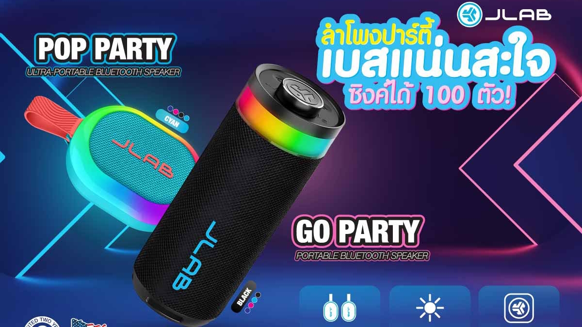 บริษัท อาร์ทีบี เทคโนโลยี จำกัด ผู้นำเข้าและจัดจำหน่ายแกดเจ็ตรายใหญ่ของไทย เปิดตัวลำโพงบลูทูธพกพาจาก JLab สองรุ่นใหม่ ได้แก่ JLab Go Party และ JLab Pop Party พร้อมไฟ RGB และฟีเจอร์เชื่อมต่อได้สูงสุด 100 ตัว เริ่มต้น 990 บาท