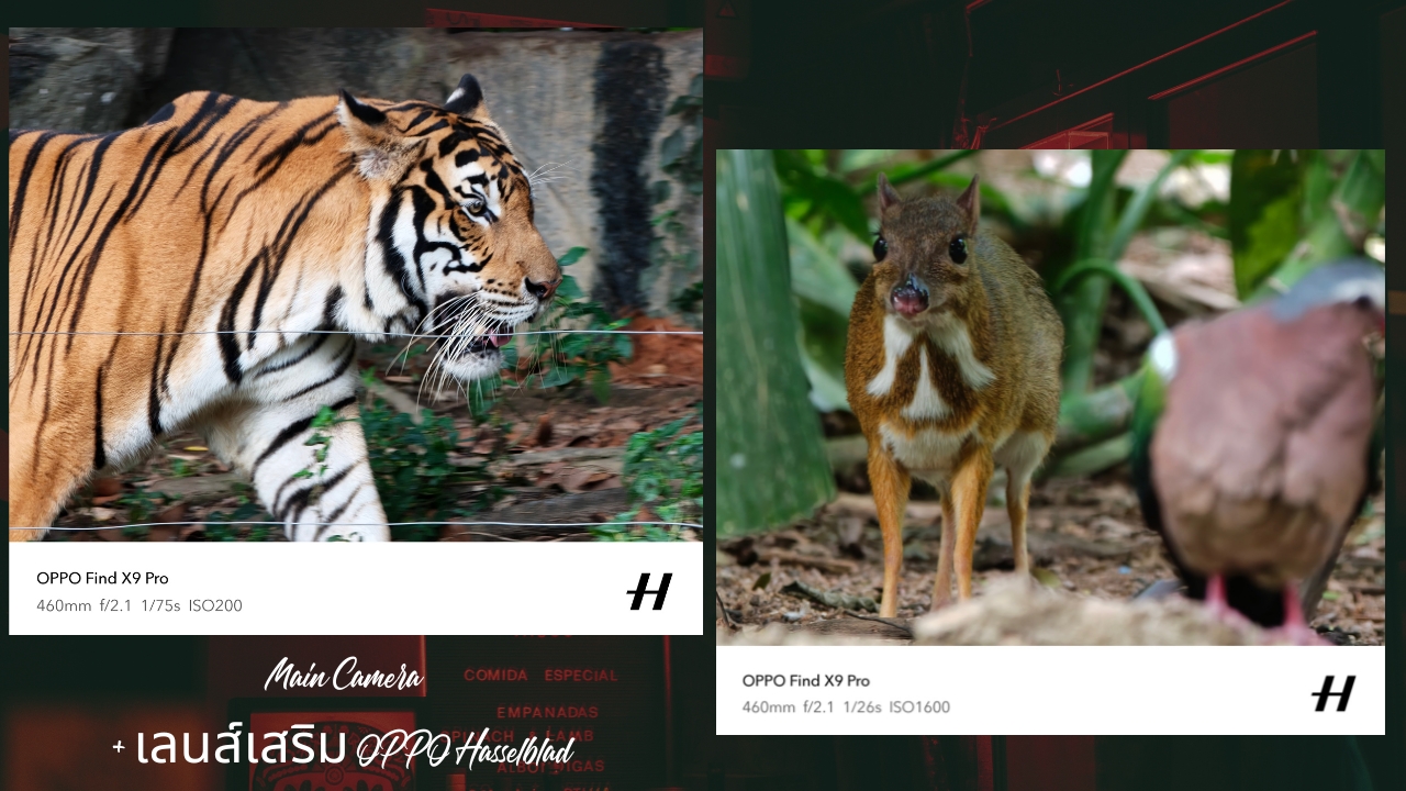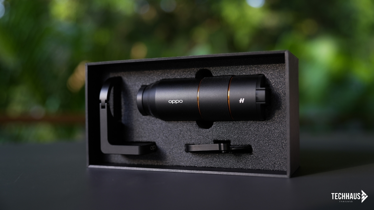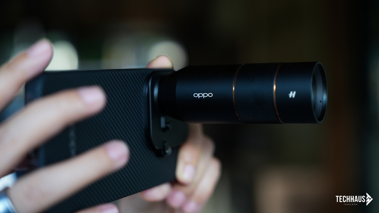 และอีกหนึ่งลูกเล่นที่หลายคนรอคอย คือชุดเลนส์เสริม OPPO Hasselblad เลนส์เทเลโฟโต้ระดับ Super 3.28x ระยะโฟกัส 230 มม. พร้อมเซ็นเซอร์ขนาดใหญ่ 1/1.56 นิ้ว ความละเอียด 200 ล้านพิกเซล และรูรับแสงกว้าง f/2.1