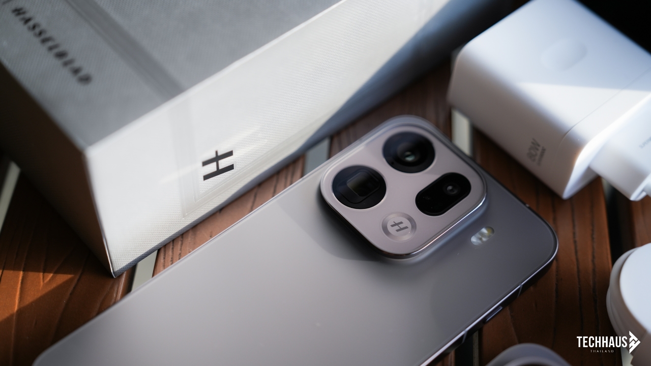 จุดเด่นที่สุดของตัวเครื่องคือโมดูลกล้องด้านหลังที่ถูกวางไว้ตรงมุมซ้ายบน ภายในโมดูลมีกล้องทั้งหมด 4 ตัว จัดเรียงอย่างสมมาตรสวยงาม ประกอบด้วยกล้องหลัก 50MP, กล้อง Telephoto 200MP, กล้อง Ultra-Wide 50MP และกล้องสีสันสมจริง (True Color Camera) พร้อมตราสัญลักษณ์ Hasselblad ที่บอกได้เลยว่านี่คือกล้องระดับมืออาชีพ