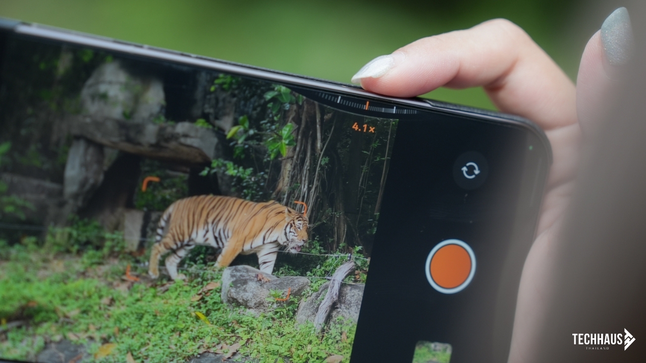 และเมื่อโทรศัพท์อยู่ในแนวนอน ยังสามารถปัดปุ่มเพื่อซูมเข้าและออกได้อีกด้วย สะดวกมากสำหรับช่างภาพที่ต้องการควบคุมการถ่ายภาพอย่างรวดเร็ว รู้สึกได้ถึงความใส่ใจในการออกแบบเพื่อผู้ใช้งานจริงๆ