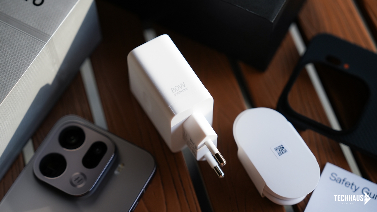 ส่วนอุปกรณ์ในกล่องก็ครบครันเริ่มกันที่หัวชาร์จไว 80W SUPERVOOC, สายชาร์จ USB-C คุณภาพดี เคสใสสำหรับใส่ป้องกัน, คู่มือการใช้งาน และเข็มดัน SIM Tray ครบเซ็ตทุกอย่างที่จำเป็น OPPO ใส่ใจรายละเอียดตั้งแต่เปิดกล่องจริงๆ