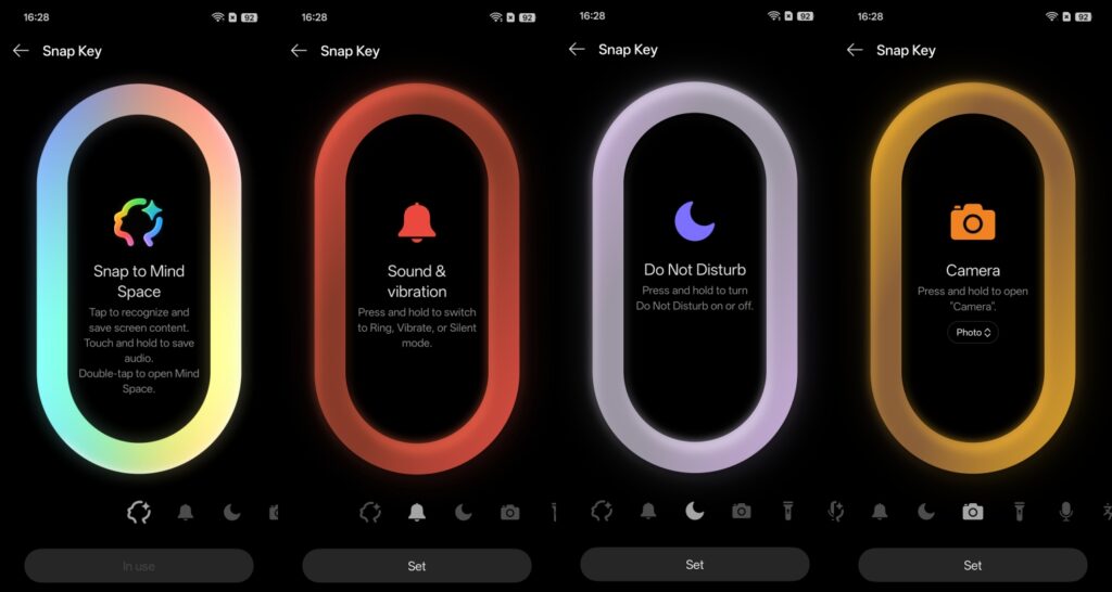 ด้านซ้ายของตัวเครื่องมี Snap Key ซึ่งเป็นปุ่มทางกายภาพที่ปรับแต่งได้ตามใจชอบ สามารถตั้งค่าให้ทำหน้าที่ต่างๆ ได้หลากหลาย เช่น สลับโปรไฟล์เสียง เปิด-ปิดไฟฉาย บันทึกเสียง แปลภาษา หรือจับภาพหน้าจอ ใช้งานง่ายมาก