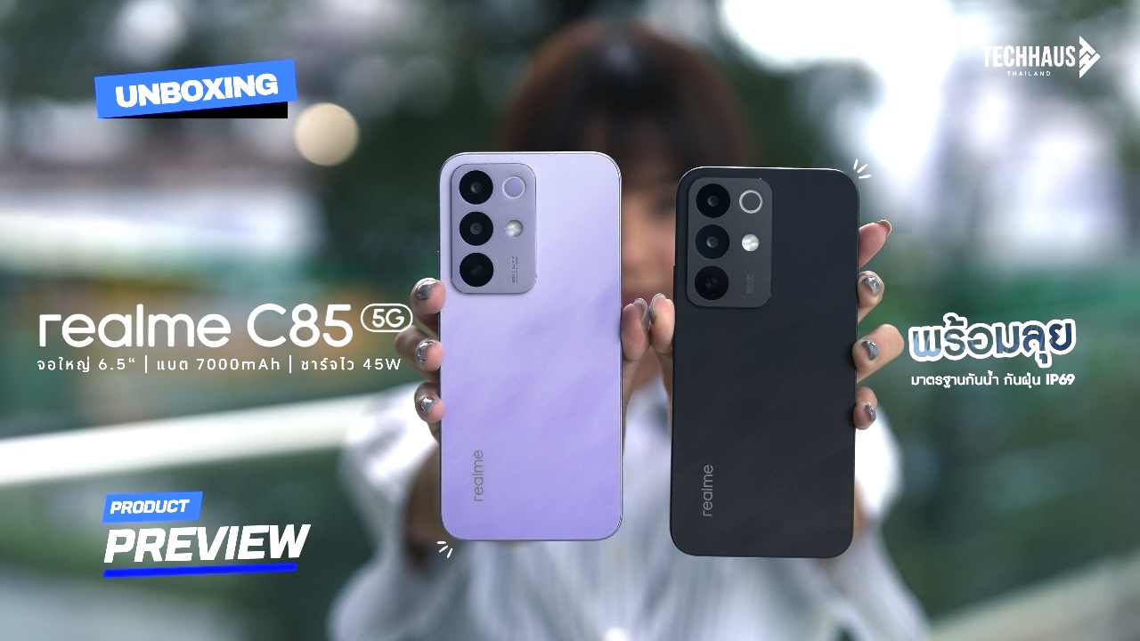 น่าสนใจไม่แพ้กันที่ realme ได้ส่งสมาร์ตโฟนลงสนามถึง 2 รุ่น คือ C85 และ C85 5G โดยแต่ละรุ่นมีการจัดสเปคที่ตอบโจทย์ผู้ใช้งานคนละกลุ่มอย่างชัดเจน ซึ่ง realme C85 5G นั้นมาพร้อมความแรงและฟีเจอร์ครบครันที่พร้อมตอบสนองทุกการใช้งาน