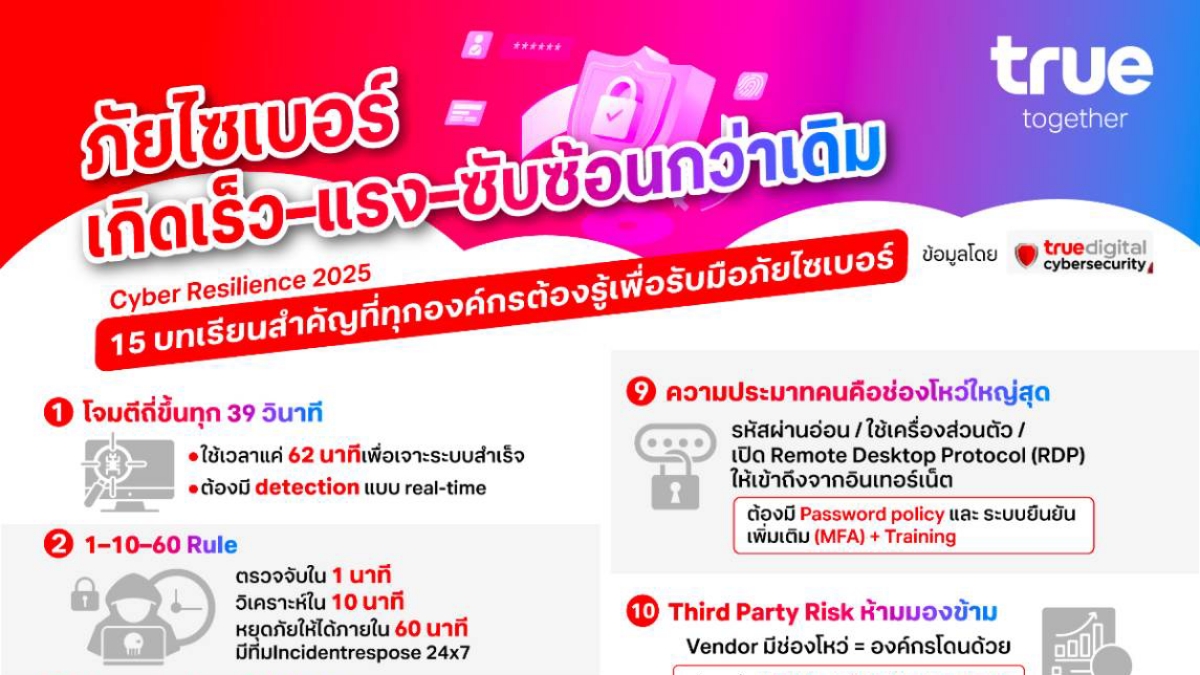ผู้เชี่ยวชาญ True Digital Group เผย 15 บทเรียนสำคัญ เตรียมองค์กรรับมือภัยโจมตีไซเบอร์