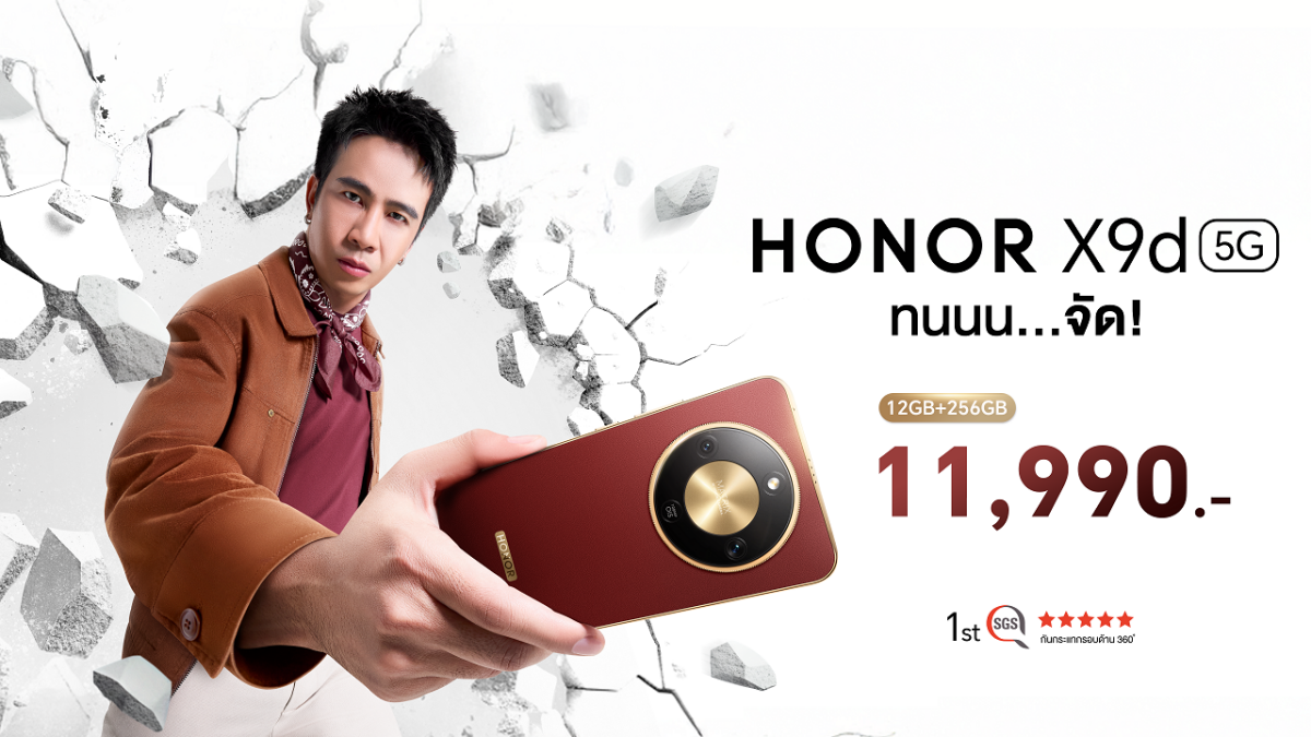 ออเนอร์ (HONOR) ผู้ให้บริการอุปกรณ์อัจฉริยะชั้นนำระดับโลก ประกาศเปิดตัว HONOR X9d 5G อย่างเป็นทางการในตลาดไทย โดยสมาร์ตโฟนรุ่นนี้ตอบโจทย์ผู้ใช้งานที่ต้องการความทนทาน ประสิทธิภาพ และประสบการณ์การถ่ายภาพที่ครบครัน ด้วยฟีเจอร์เด่นที่สร้างมาตรฐานใหม่ให้กับสมาร์ตโฟนระดับกลาง นอกจากนี้ยังดึง ก้อง ห้วยไร่ ศิลปินลูกทุ่งชื่อดัง กลับมาเป็นพรีเซนเตอร์และ HONOR’s Friend เป็นปีที่สอง เพื่อสะท้อนภาพลักษณ์ความแกร่งและคุ้มค่าของผลิตภัณฑ์