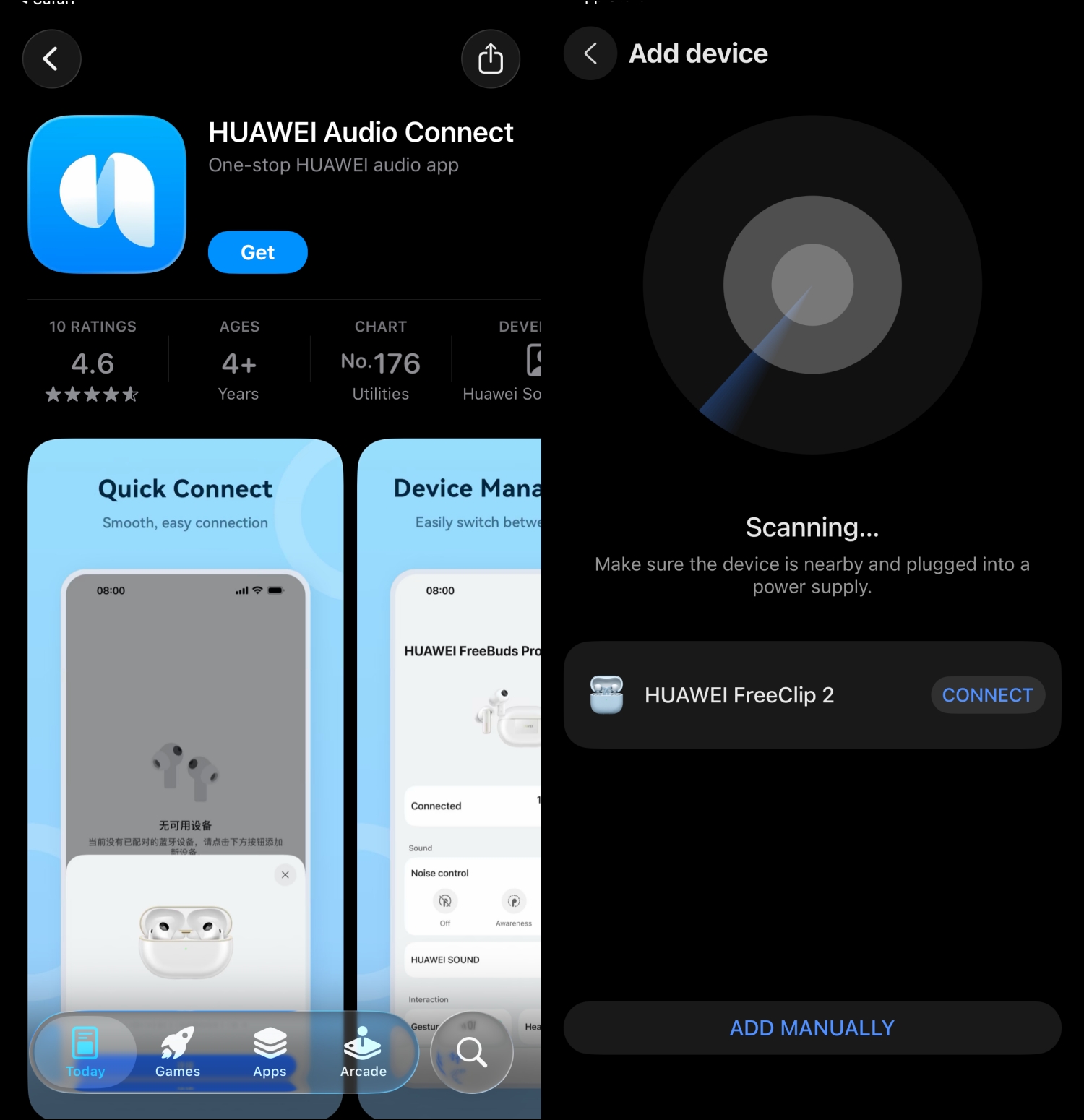 เมื่อเชื่อมต่อ FreeClip 2 กับสมาร์ตโฟนแล้ว คุณสามารถใช้งานผ่านแอปพลิเคชัน แอปพลิเคชัน HUAWEI Audio ได้อย่างสะดวก แอปนี้จะแสดงสถานะแบตเตอรี่ของหูฟังทั้งสองข้างและเคสชาร์จแบบเรียลไทม์ พร้อมให้คุณปรับแต่งการใช้งานต่างๆ ได้ตามต้องการ