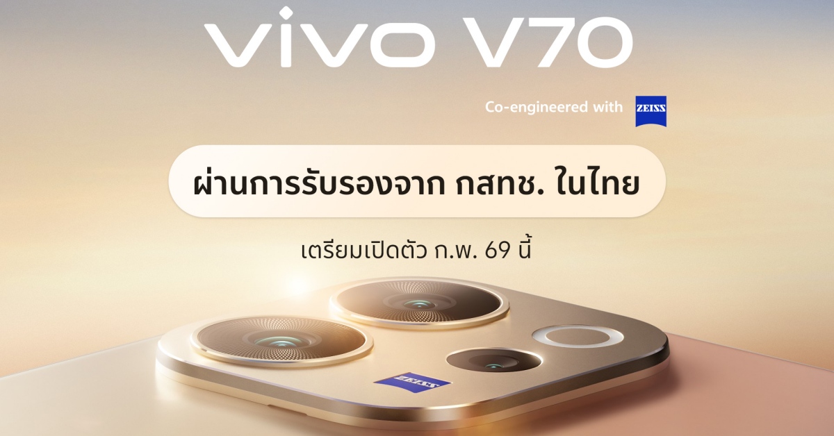กรุงเทพฯ 2 กุมภาพันธ์ 2569 – vivo แบรนด์สมาร์ตโฟนชั้นนำระดับโลก ยืนยันเตรียมส่ง vivo V70 สมาร์ตโฟนรุ่นใหม่ล่าสุดจากตระกูล V Series เข้าสู่ตลาดไทยอย่างเป็นทางการภายในเดือนกุมภาพันธ์นี้ หลังผ่านการรับรองจาก กสทช. เรียบร้อยแล้ว