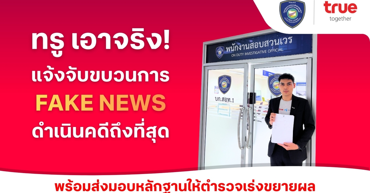 ทรู คอร์ปอเรชั่น แจ้งความตำรวจไซเบอร์ เอาผิดกลุ่มบัญชีโซเชียลปั่นเฟคนิวส์-ใช้ AI บิดเบือนข้อมูล