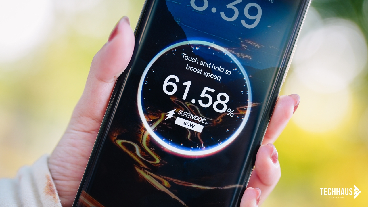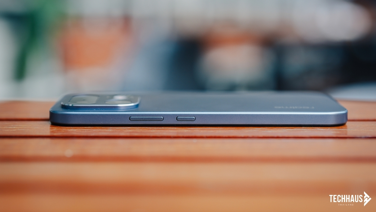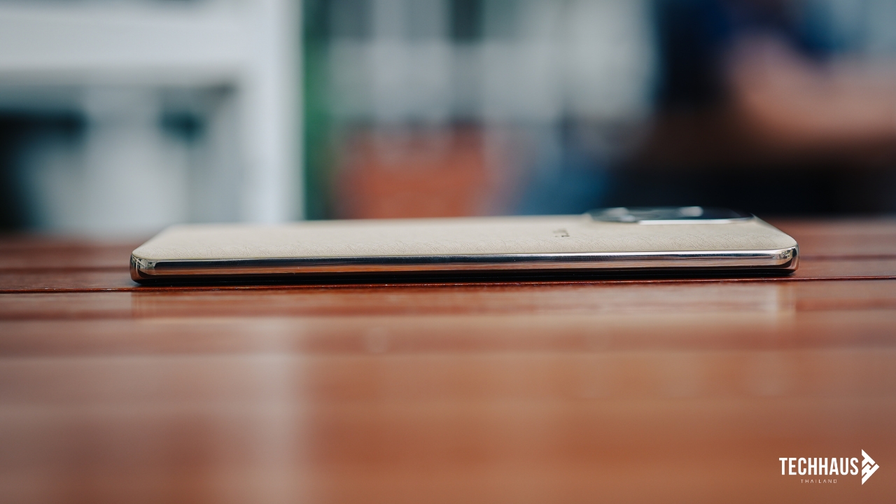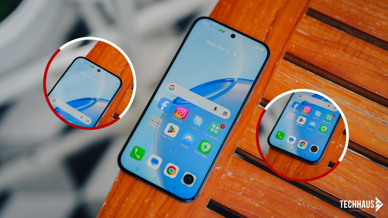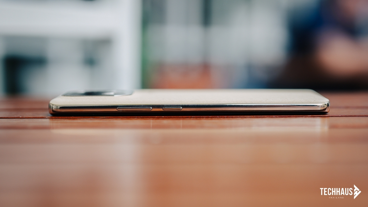 ความรู้สึกในมือคือ “จับได้ทั้งวันโดยไม่รู้สึกเมื่อย” เพราะเส้นโค้งของตัวเครื่องเชื่อมกันอย่างต่อเนื่องจากด้านหลังถึงกรอบข้างและหน้าจอ ไม่มีจุดที่ขอบกดทับฝ่ามือ จับแล้วรู้สึกนุ่มมือ ไม่ลื่น และยังทนรอยขีดข่วนได้ดีอีกด้วย