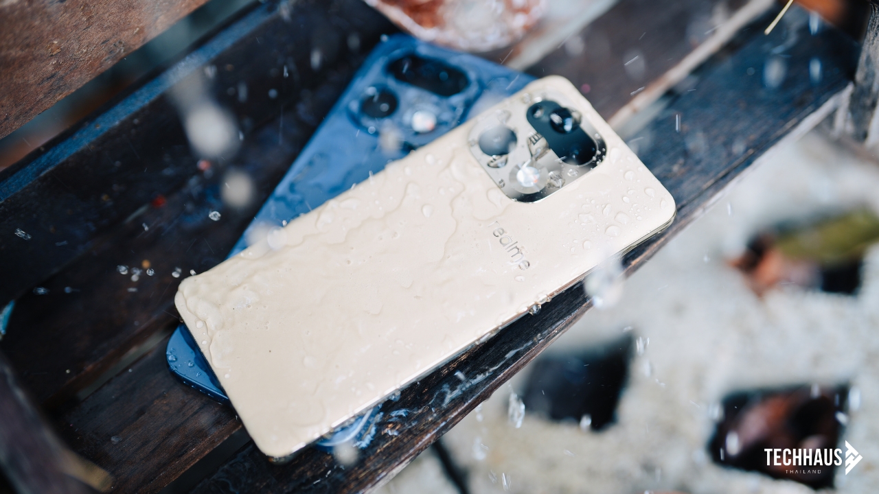 จุดเด่นที่ทำให้ realme 16 Pro 5G โดดเด่นในระดับราคานี้คือมาตรฐานกันน้ำ IP69 ที่ผ่านการรับรองครบทั้ง IP66, IP68, IP69 และ IP69K ไม่ว่าจะเป็นฝนกระหน่ำ น้ำแรงดันสูง หรือของเหลวกระเด็น ก็ใช้ได้อย่างสบายใจ ทนทานต่ออุณหภูมิสูงถึง 80°C และรองรับของเหลวได้มากถึง 36 ชนิด