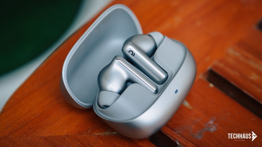 เรื่องแบตเตอรีก็ไม่ธรรมดา ใช้งานได้ต่อเนื่องสูงสุดถึง 45 ชั่วโมง เมื่อรวมกับเคสชาร์จในโหมดปิด ANC ฟังเพลงตั้งแต่เช้าจรดดึกหลายวันติดต่อกันก็ยังไม่หมดง่าย ๆ และเมื่อแบตหมดจริง ๆ ก็ชาร์จผ่านพอร์ต USB-C ใช้เวลาเพียงประมาณ 1.5 ชั่วโมงก็เต็มพร้อมใช้งานอีกครั้ง
