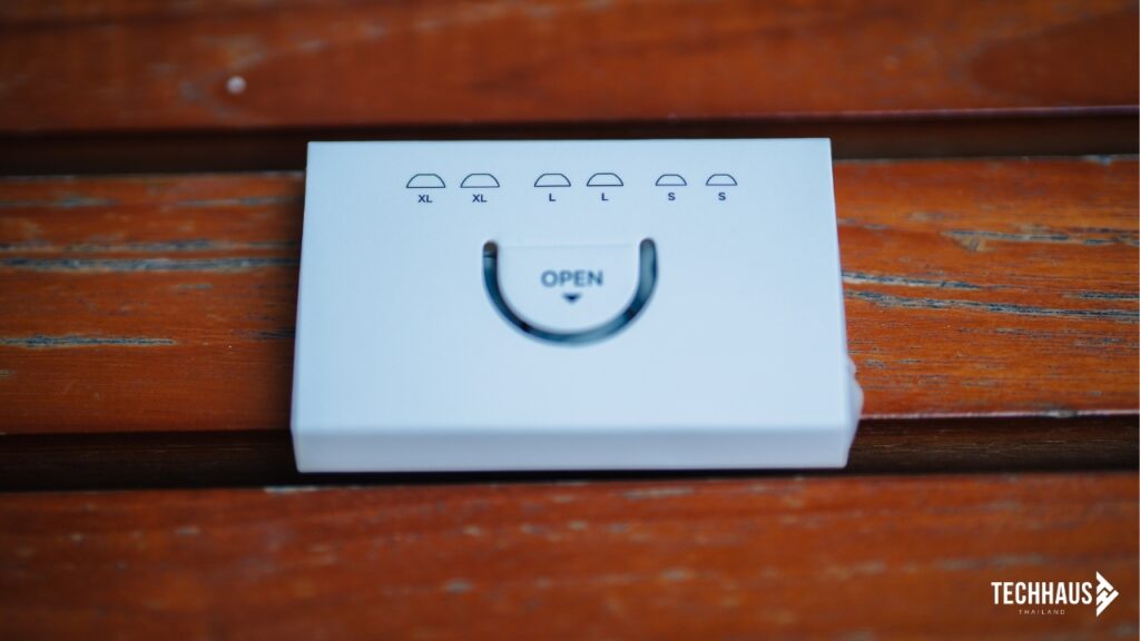 ส่วนชั้นในช่วยล็อกให้จุกหูฟังกระชับอยู่กับที่ ไม่หลุดหล่นง่าย ๆ แม้จะสวมทั้งวันก็ยังรู้สึกสบายหูอยู่ ไม่เจ็บ ไม่กดทับ
