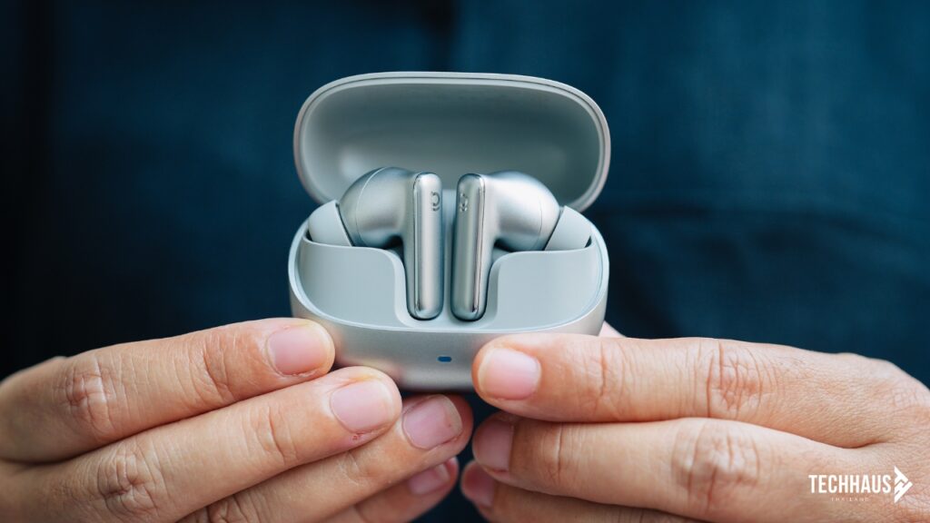 เรื่องตัดเสียงรบกวนก็ไม่ธรรมดา ระบบ Adaptive ANC แบบ Hybrid ปรับระดับการตัดเสียงตามสภาพแวดล้อมแบบอัตโนมัติ ตัดได้สูงสุด -55dB ไม่ว่าจะอยู่ในออฟฟิศ บนรถไฟฟ้า หรือในคาเฟ่ เปิดขึ้นมาทีเดียวเสียงรบกวนรอบข้างก็เงียบหายไปเกือบหมด