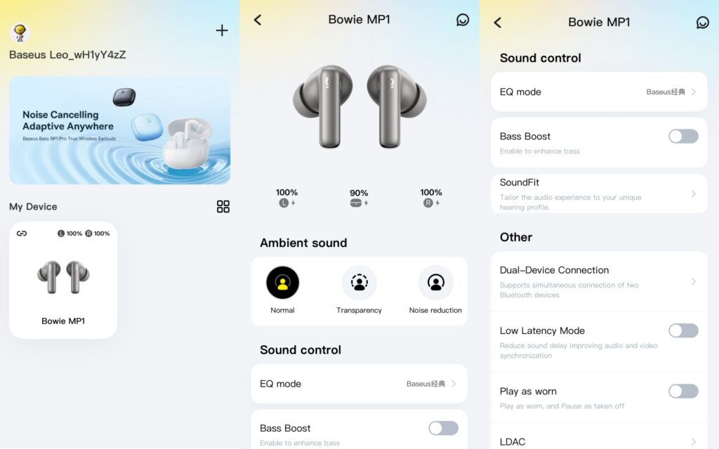 นอกจากนี้ยังตั้งค่าโหมด ANC ได้ตามความต้องการ รวมถึงปรับฟีเจอร์อื่น ๆ ของหูฟังได้อย่างละเอียด ทำให้ Baseus Bowie MP1 ไม่ได้เป็นแค่หูฟังที่ฟังเพลงได้ดี แต่เป็นหูฟังที่ปรับแต่งได้ตามตัวตนของคุณอย่างแท้จริง
