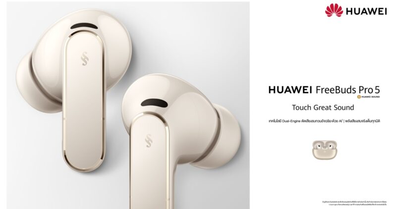 หัวเว่ย คอนซูมเมอร์ บิสสิเนส กรุ๊ป (ประเทศไทย) เปิดตัว HUAWEI FreeBuds Pro 5 หูฟังไร้สายแบบ In-ear ระดับพรีเมียมรุ่นล่าสุด ที่ได้รับการออกแบบมาเพื่อยกระดับประสบการณ์เสียงในทุกมิติ ทั้งด้านความบันเทิง การสื่อสาร และการใช้งานในชีวิตประจำวัน ด้วยเทคโนโลยีเสียงขั้นสูงและนวัตกรรมการตัดเสียงรบกวนอัจฉริยะผ่าน AI โดยจะเริ่มวางจำหน่ายในประเทศไทยตั้งแต่วันที่ 27 มีนาคมนี้เป็นต้นไป