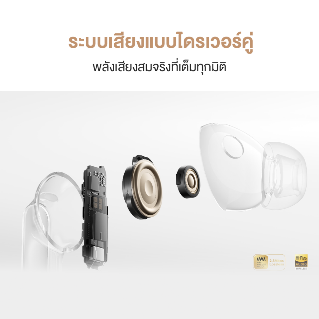 ในด้านคุณภาพเสียง HUAWEI FreeBuds Pro 5 ใช้ระบบลำโพงแบบไดรเวอร์คู่ที่แยกการทำงานของเสียงความถี่สูงและต่ำอย่างอิสระ ถ่ายทอดเสียงได้อย่างสมจริงในทุกมิติ ทั้งเสียงแหลมที่คมชัด เบสที่ลึกทรงพลัง และรายละเอียดเสียงที่ครบถ้วนสมบูรณ์ รองรับเทคโนโลยี L2HC 4.0 audio codec (มาตรฐานการเข้ารหัสเสียงของ หัวเว่ย ที่รักษาคุณภาพเสียงแบบ Lossless หรือไม่สูญเสียข้อมูลระหว่างการส่งสัญญาณ) ที่สามารถส่งสัญญาณเสียงคุณภาพสูงสุด 2.3 Mbps เพื่อให้ได้เสียงที่ใกล้เคียงต้นฉบับมากที่สุด พร้อมด้วย 4 โปรไฟล์เสียง HUAWEI SOUND ที่ครอบคลุมทุกรสนิยม ไม่ว่าจะเป็นโหมดเน้นความสมดุลสำหรับฟังสบายได้ทุกแนว โหมดชูเสียงร้องให้โดดเด่น โหมดให้มิติและรายละเอียดเครื่องดนตรี และโหมดเพิ่มพลังเสียงต่ำ ให้ผู้ใช้ปรับแต่งประสบการณ์การฟังได้อย่างเต็มที่ตามความต้องการของตน