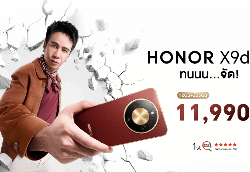 HONOR เปิดตัวสมาร์ตโฟนรุ่นใหม่ HONOR X9d 5G ภายใต้สโลแกน “ทนนน…จัด!” พร้อมแบตเตอรี่ขนาด 8,300mAh ที่ใหญ่ที่สุดในตลาดสมาร์ตโฟนปัจจุบัน กล้อง 108MP พร้อมระบบกันสั่น OIS+EIS และรองรับการตกกระแทกสูงสุด 2.5 เมตร เริ่มวางจำหน่าย 4 ธันวาคม 2568 ในราคา 11,990 บาท พร้อมมอบสิทธิ์ลุ้นรางวัล Mercedes-Benz C 350e AMG Dynamic